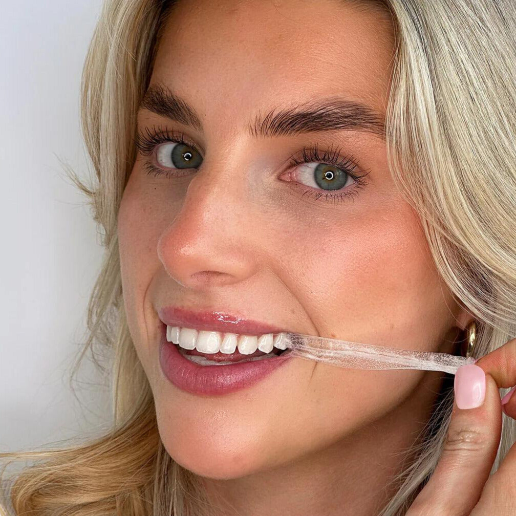 Traditional whitening strips use harsh peroxide alone, which attacks stains but also irritates your gums and teeth.
